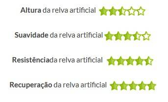 | Melhor relação qualidade preço 3 tons de verde grande realismo e suavidade 3 diferentes fios: monofilamento, retos & encaracolados que tem a função de suporte, mantendo os fios verticais firmes e erguidos, para poder recuperar a sua forma após a pisada. Aspeto fresco e natural. Recomendado se tiver crianças , para criar um “efeito amortecimento” excecional. |